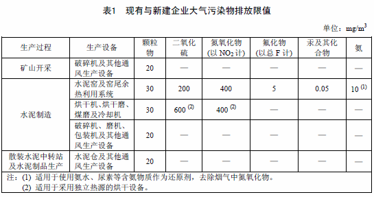 引用文件:《水泥工业大气污染物排放标准》 GB 4915-2013